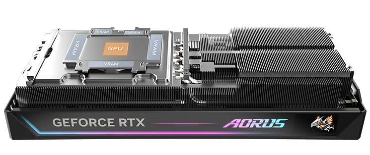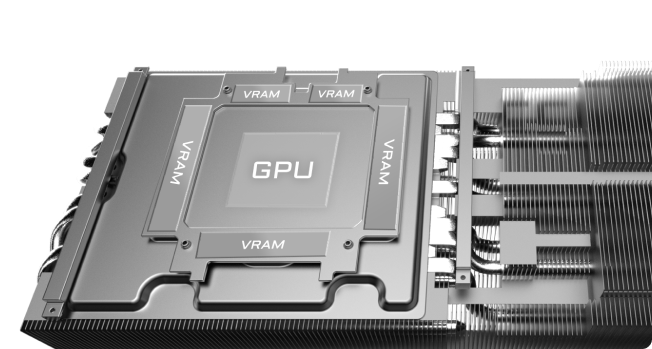 大型均热板直接与 GPU 接触,再加上复合式热管,可快速将 GPU 和 VRAM 的热量传递到散热器。