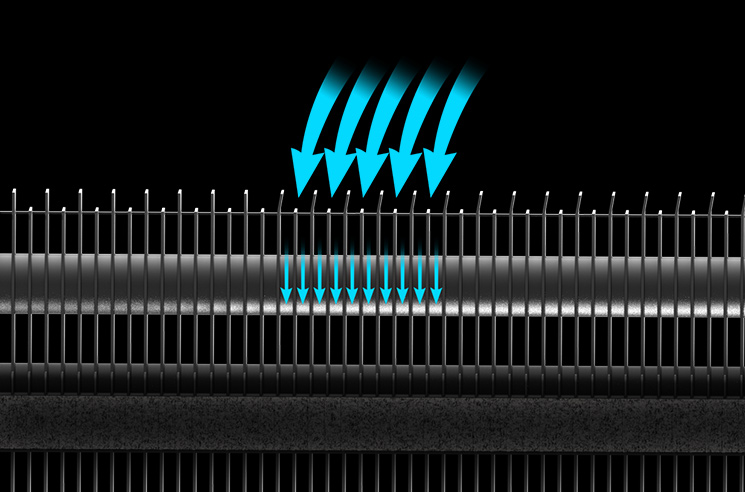 棱角分明且不等的鳍片高度设计有效地引导鳍片之间的气流,从而增加与空气的接触表面积并提高散热效率。
