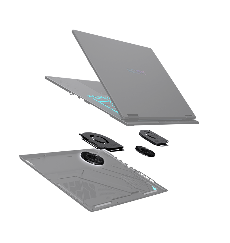 GIGABYTE GAMING A16 配備技嘉知名的 WINDFORCE 風之力散熱技術,採用雙風扇及 3D VortX 立體風道設計提供極致氣流。冰感設計讓玩家可在較低溫的鍵盤上進行舒適操作。