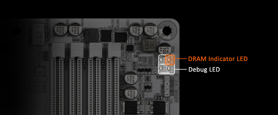 當模組安裝到非建議的插槽時,DRAM 指示燈 LED 將會亮起。