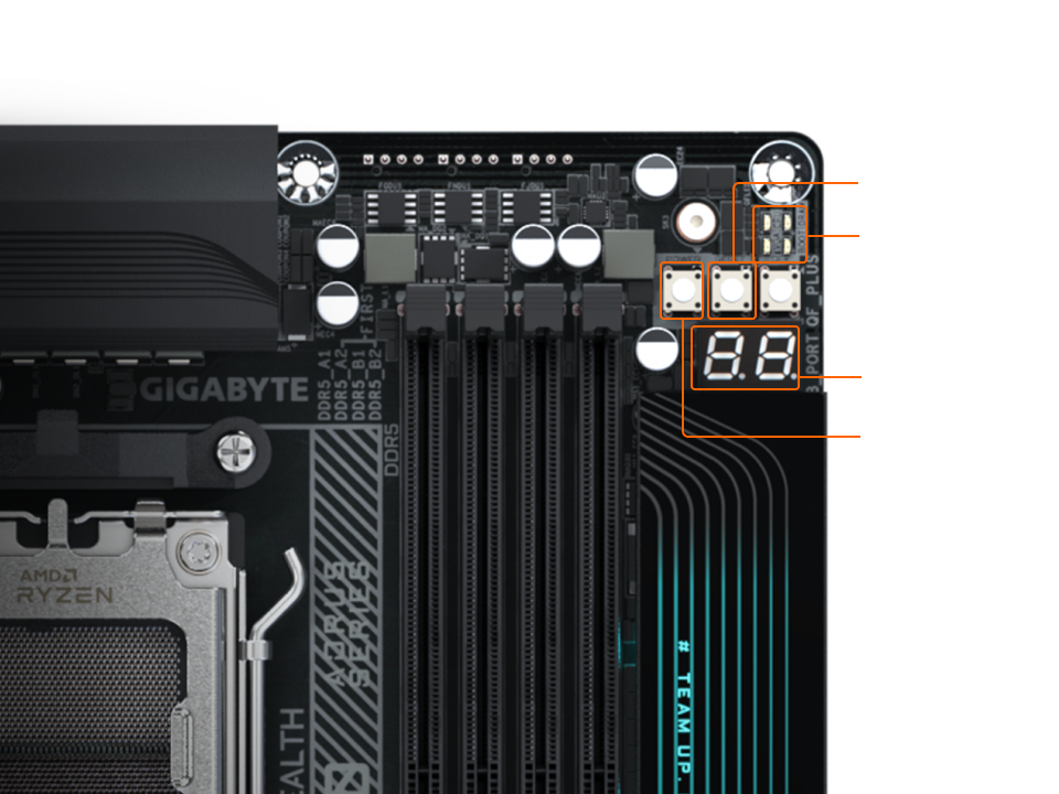 • 雙通道DDR5 : 4組記憶體插槽,支援AMD EXPO™ 記憶體模組