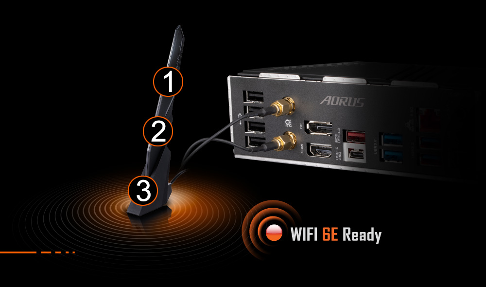 Wi-Fi 6E 802.11ax 2T2R & BT 5 搭配 AORUS 天線