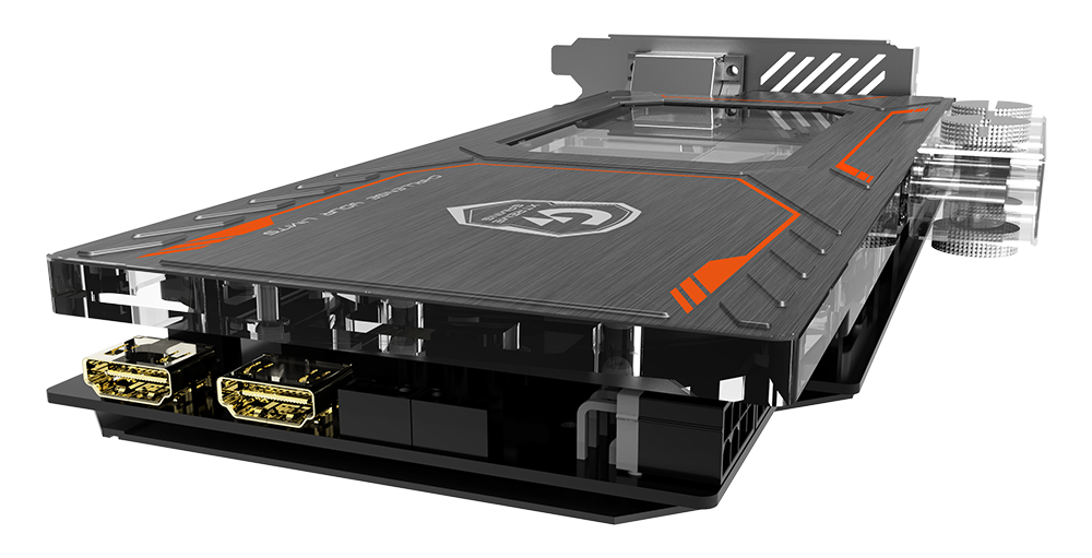 為迎合水冷玩家們打造個人專屬遊戲電腦的強烈需求,本卡具備全彩RGB燈效,從卡身邊緣透出酷炫光芒;玩家可經由Xtreme Engine軟體,隨心所欲選擇多達千萬種顏色和特效,恣意搭配出與眾不同的PC視覺風格。背面另有金屬強化背板保護,讓外型更加強悍俐落,搭配航太等級PCB保護膜,從內到外提供層層防護,有效強化整體結構,同時達到防潮、防塵、抗腐蝕等功效。