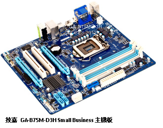 看好小型企業的電腦市場成長力道,技嘉也展示B75M-D3H主機板,這一系列主機板提供監控、電腦狀況與軟體使用管理、資料備份、節能和無線連接等特殊功能。