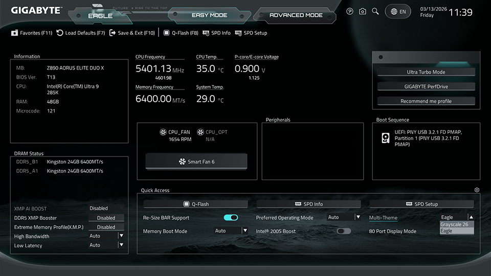 Now users can choose different BIOS themes with one simple click It not only delivers an immersive user experience but also offers a brand new user-friendly theme: Grayscale.