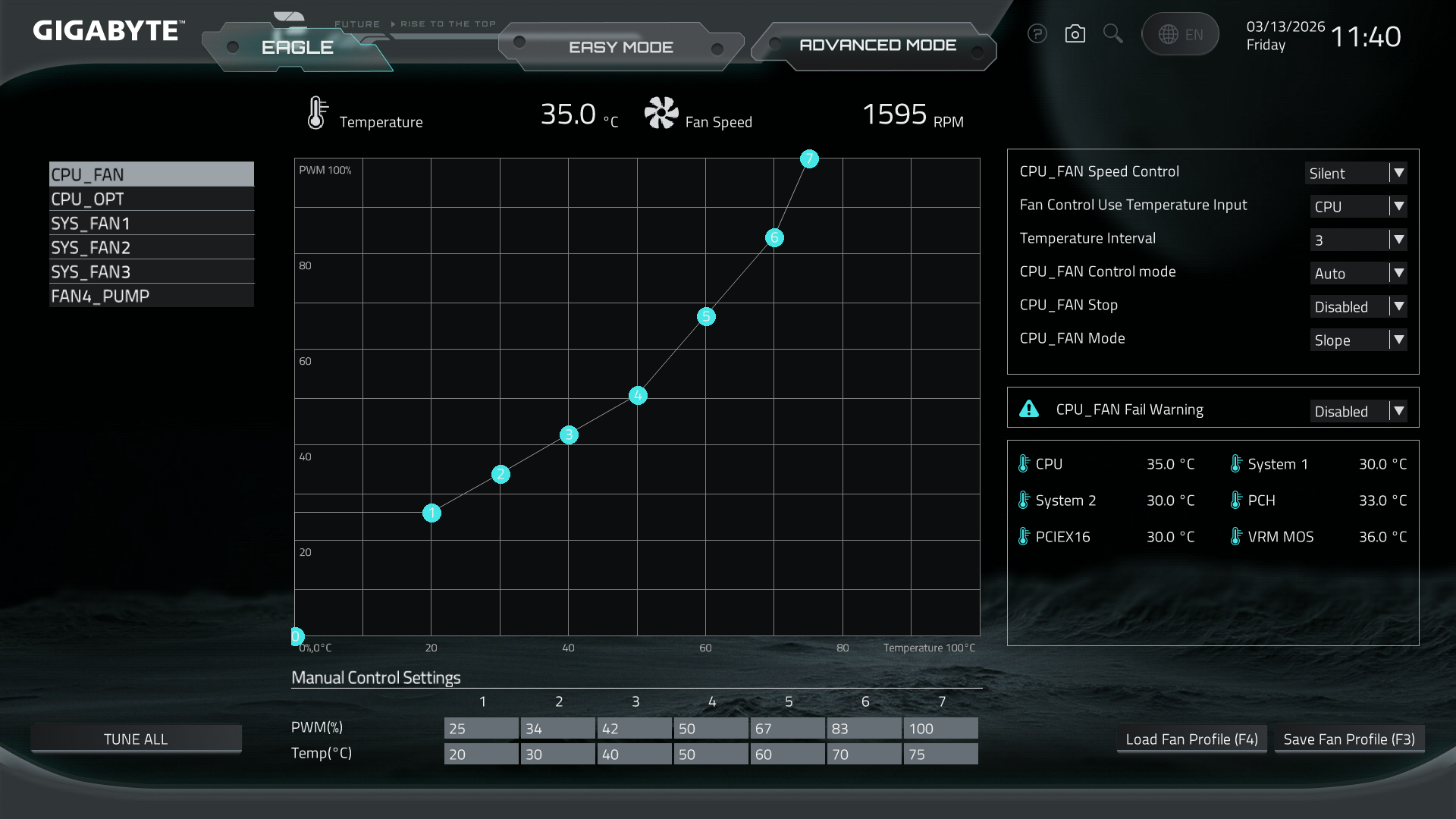 - Slope mode: Smooth fan speed curve