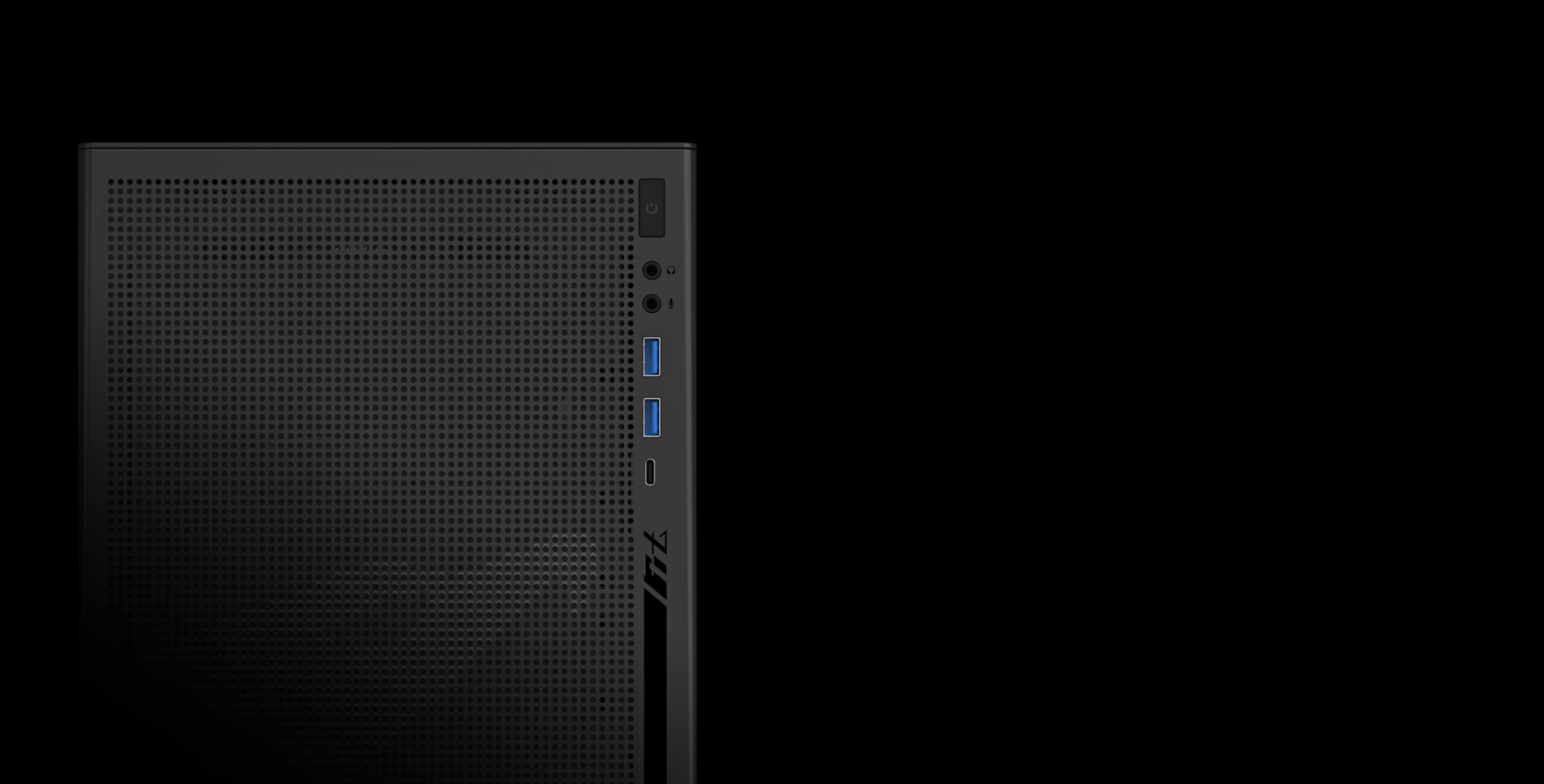 Provides a USB 3.2 Gen2 Type-C port with a transmission speed of up to 10 Gbps, along with two USB 3.0 ports, audio ports, and a power button.