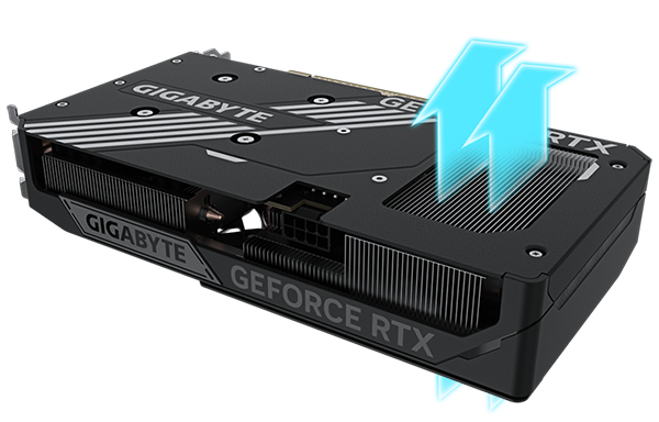 The WINDFORCE cooling system delivers exceptional thermal performance through a combination of cutting-edge technologies. It features server-grade thermal conductive gel, innovative Hawk fans with alternate spinning, composite copper heat pipes, copper plate, 3D active fans, and screen cooling.