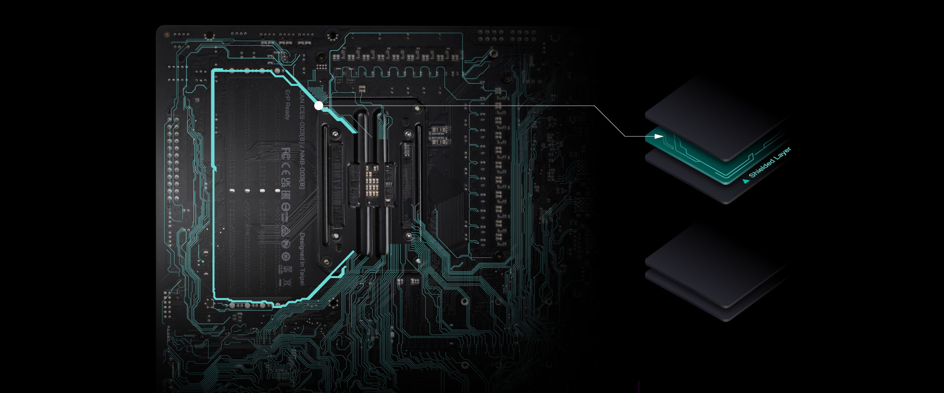 AORUS motherboards feature an audio noise guard that essentially separates the board’s sensitive analog audio components from potential noise pollution at the PCB level.