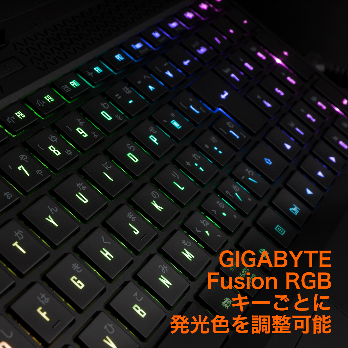 AORUS 15GはRGB Fusion2.0テクノロジーの優れた特性を引き継ぎます。各キーは、異なるライティングとマクロキー機能を簡単に設定でき、ライティングでカッコよく演出するだけではなく、戦場を勝利に導きます。