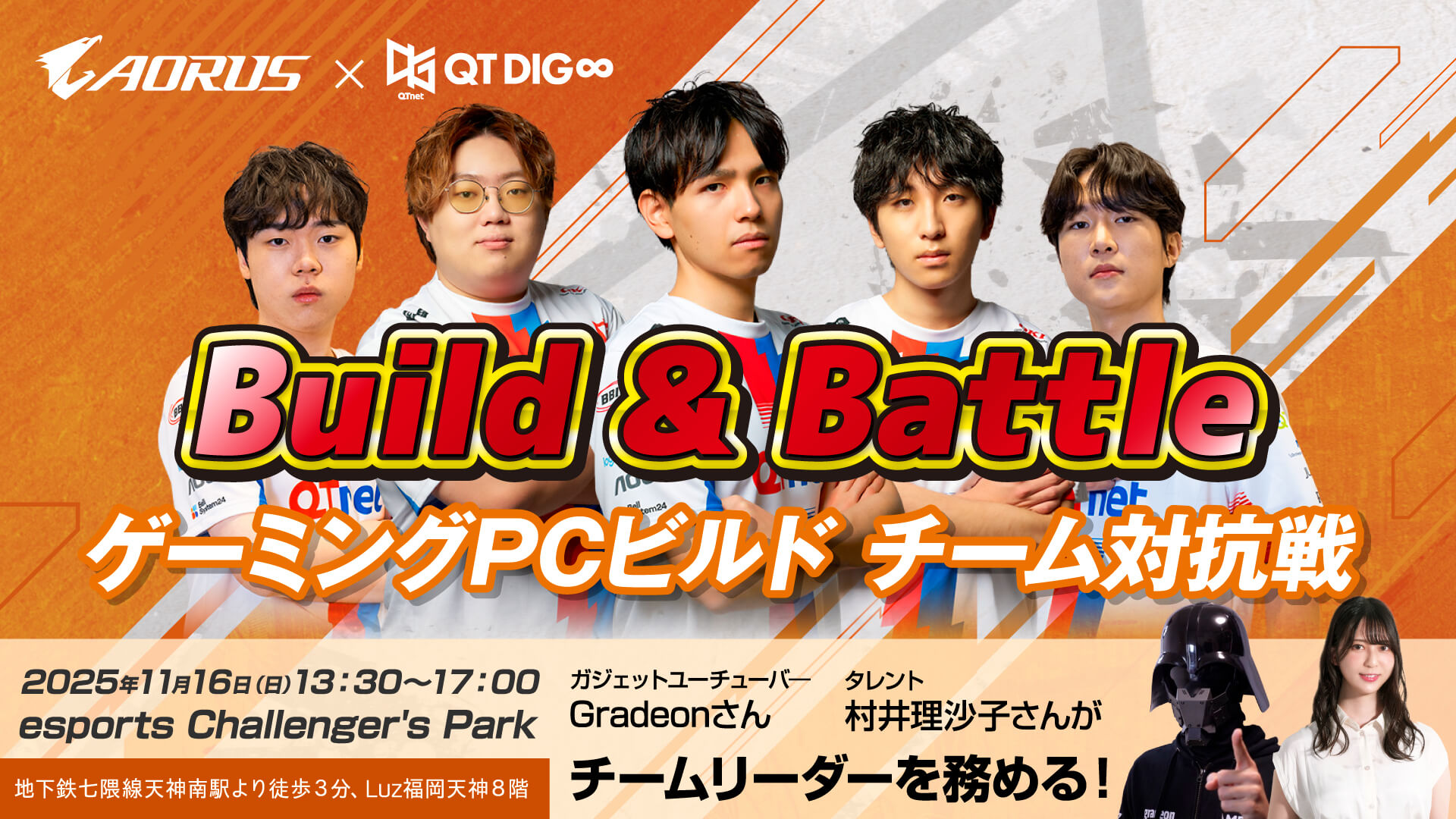 AORUS (GIGABYTE; 日本ギガバイト株式会社) はプロ esports チーム QT DIG∞ (株式会社戦国) と共同で、2025年11月16日(日) 福岡県福岡市 esports Challenger's Park にて、「Build & Battle 最強ゲーミーティング PC を一緒に作ろう!」イベントを開催いたします。