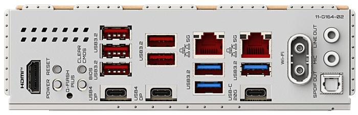 ※ 16+2+2 フェーズ・デジタル電源設計、VRM 用大型ヒートシンク & M.2 Thermal Guard L、EZ-Latch Plus による PCIe x16 スロットのボタン式クリックリリース、M.2 コネクタのネジ無しEZ-Latch 設計、DDR5 EXPO & XMP 対応、リア2連 USB4 Type-C (40Gb/s) + USB 3.2 Gen.2x2 Type-C (20Gb/s)、2連 PCIe 5.0 + 2連 PCIe 4.0 M.2 スロット (磁石による位置合わせが容易な M.2 EZ-Match 付; ネジ不要着脱可能)、PCIe x16 UD スロット X アーマー、5 GbE + 5GbE 有線 LAN、WIFI 7 802.11be 無線 LAN + BT 5.4 (アンテナ線のワンタッチ着脱可能 EZ-Plug)、DriverBIOS (WIFI ドライバー内蔵式 BIOS)、一体型 I/O バックパネル、内蔵式 HDMI ディスプレイ端子、Q-Flash Plus、3年保証などを備えた AERO X3D 木目外観のホワイト・マザーボードです。