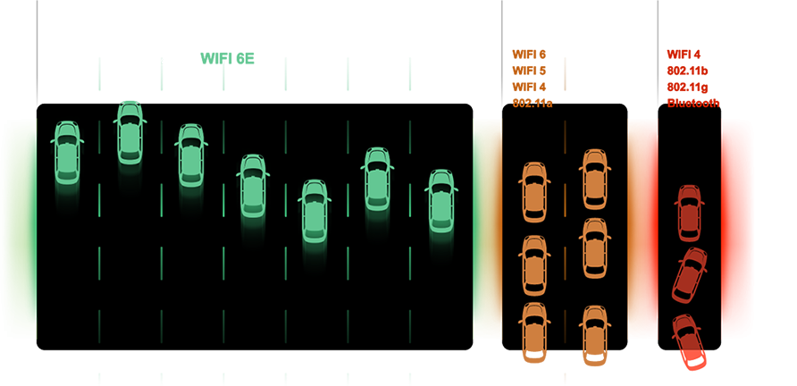 밀집되거나 혼잡한 환경인 Wi-Fi 5에 비해 약 4배 수준의 처리 용량 개선