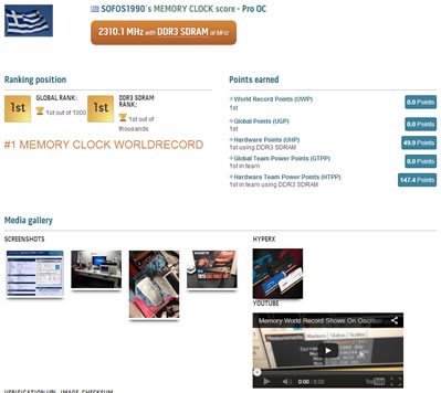 오버클럭세계에서 단순하게 벤치마크 성적을 이미지 사진과 성적을 HWBOT.org 사이트에 전송한다고 해서 자신의 오버클럭 성적이 거짓이 아니라고 충분히 증명할 수 없다. 자신의 벤치마크 성적을 업로드했어도 전혀 예상하지 못한 불의로 분실될 수 있기 때문에, GIGABYTE 오버클럭팀은 전체 오버클럭 과정과 성적 인증 과정을 동영상으로 촬영하여 증거를 남기고 동영상 파일을 유튜브에 업로드했다. 전체 과정은 GIGABYTE 오버클럭팀의 HiCookie씨와 Sofos1990씨 그리고 HWBOT 공인 대표가 함께 공증했다. 오버클럭에 사용한 메인보드 배치를 보여주는 것 이외에도 고정밀 오실로스코프로 오버클럭을 실행할 때의 메모리 주파수의 변동 상태를 보여주어, GIGABYTE의 메모리 세계신기록이 거짓이 아님을 증명했다. GIGABYTE의 오버클럭팀이 세계신기록을 달성한 자세한 내용은 다음의 링크를 클릭하면 확인할 수 있다.