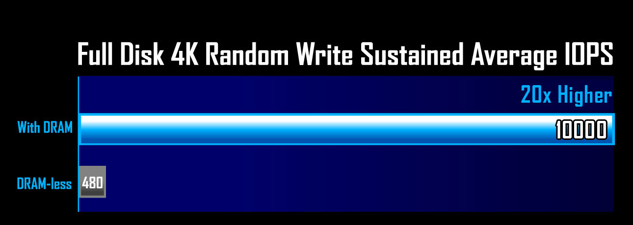 The UD PRO SSD is equipped with high speed SDRAM cache and does not need to reserve over-provisioning space, thus improving the random Read/Write performance. This means the users can use the full capacity of the drive. Moreover, external DRAM can be a buffer between controller and NAND flash for sustained performance when capacity is occupied by more and more data.