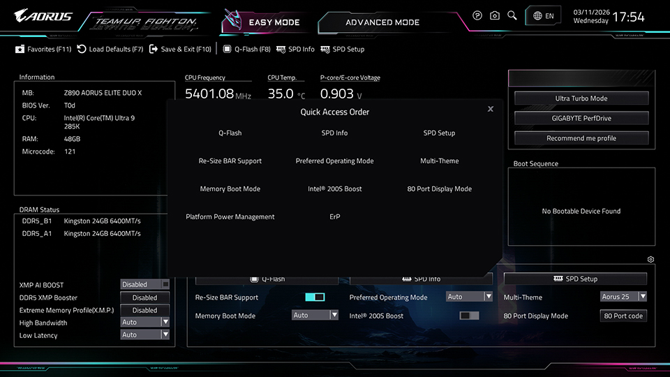 GIGABYTE UC BIOS' Quick Access function selects brings 9 key options from Advanced Mode directly into Easy Mode, enabling swift adjustments without extensive navigation.