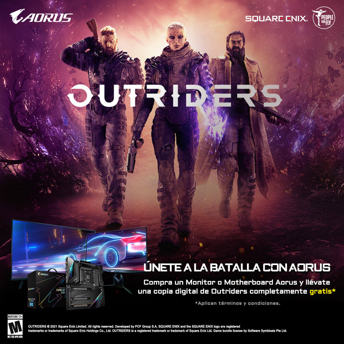 Con el lanzamiento de los muy esperados "Outriders", millones de jugadores han comprado el juego para experimentar de primera mano el nuevo título híbrido de género FPS y RPG, mientras que muchos están ansiosos por probarlo. Para recompensar a los jugadores por su inconmensurable apoyo hacia de la comunidad AORUS, GIGABYTE se ha asociado con SQUARE ENIX. A partir de ahora y hasta agotar existencias, los clientes que compren un Motherboard o un Monitor Gamer AORUS seleccionados pueden canjear una copia gratuita de Outriders. Con un canje rápido y fácil al registrar su producto, AORUS permite a los gamers jugar gratis al nuevo y popular juego de hoy mientras actualizan su PC Gamer.