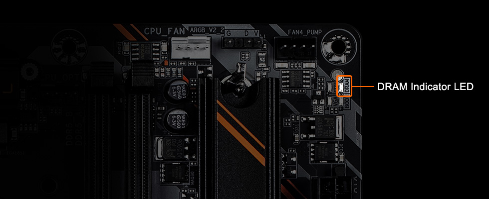 The DRAM Indicator LED will turn on when a module is installed into a non-recommended slot.