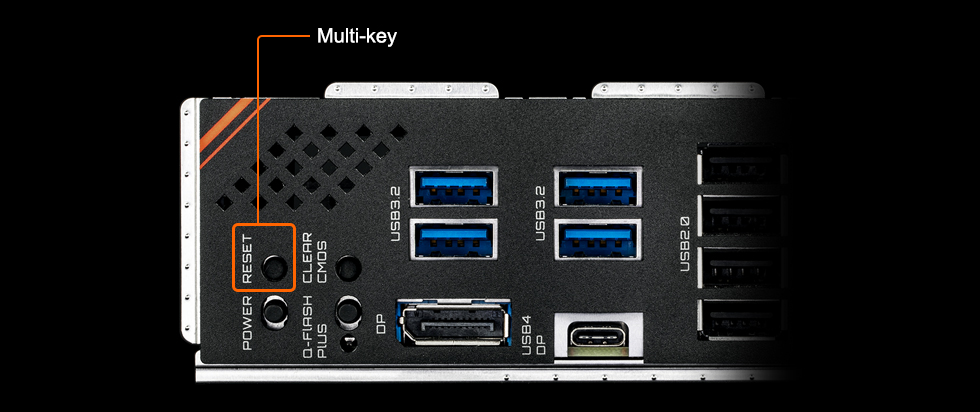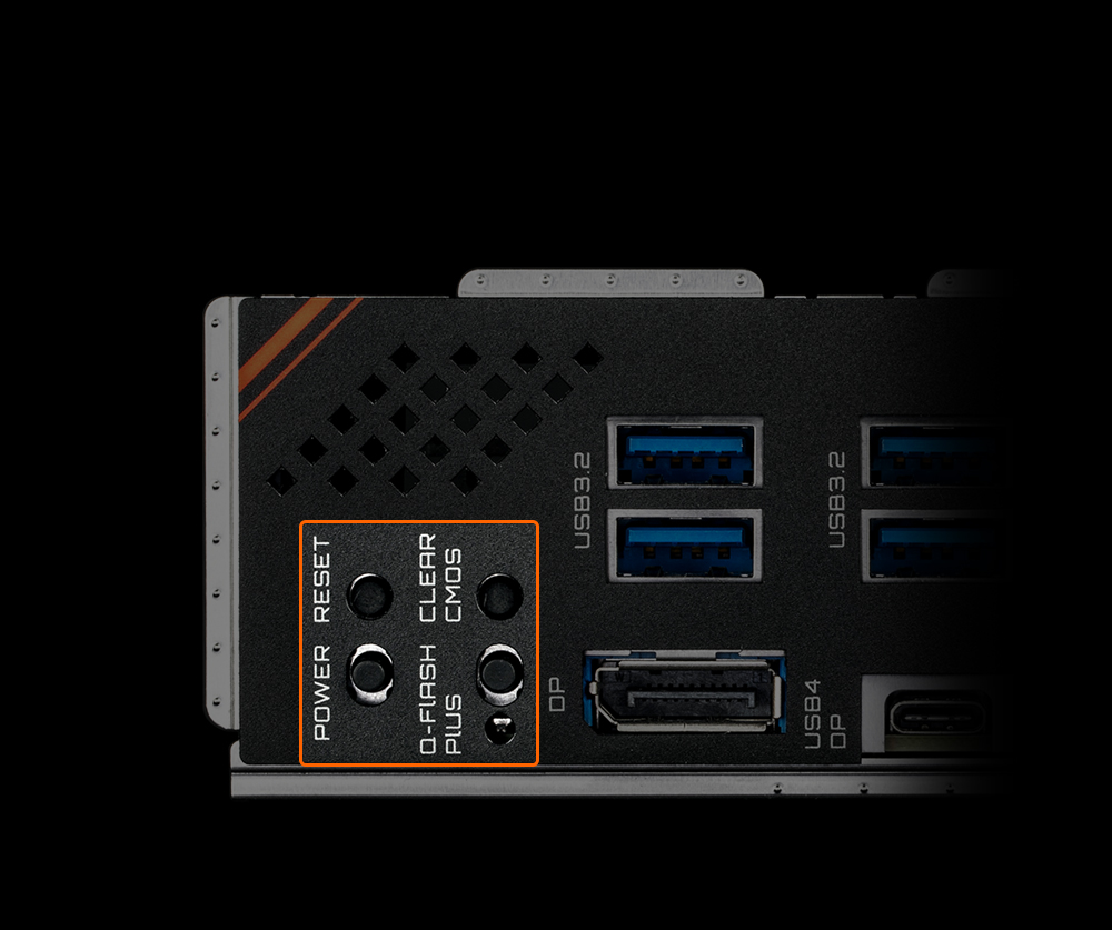 Enjoy premium ease of use through the thoughtful relocation of Power/Reset/Clear CMOS/Q-Flash+ buttons to the rear panel.