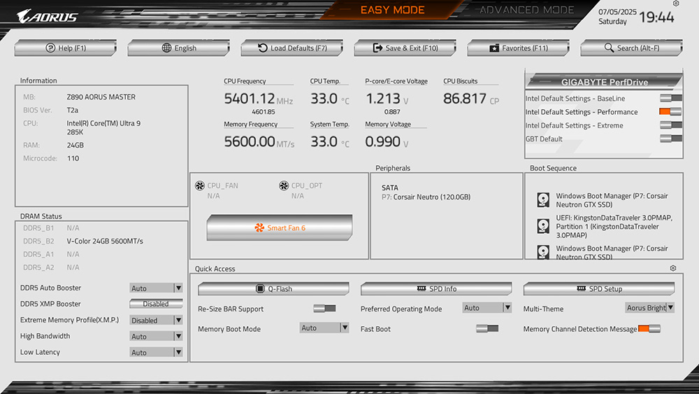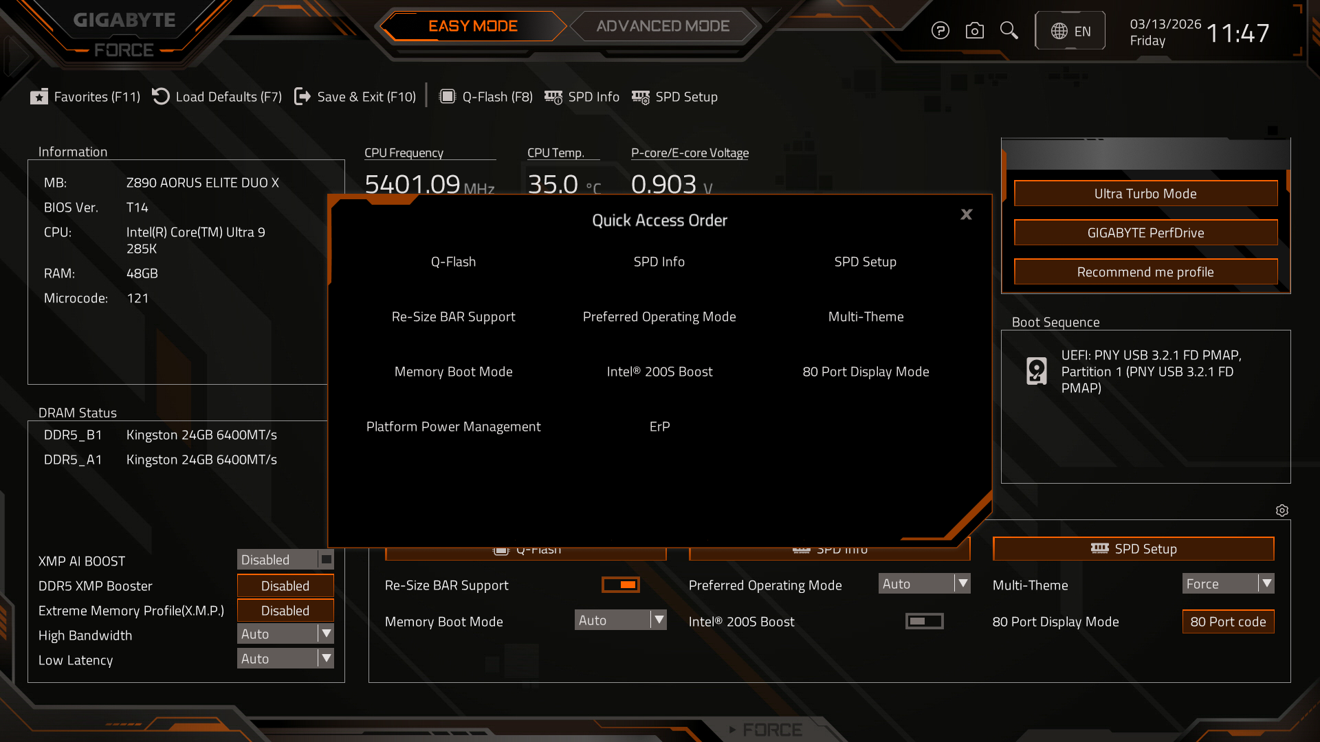 GIGABYTE UC BIOS' Quick Access function selects brings 9 key options from Advanced Mode directly into Easy Mode, enabling swift adjustments without extensive navigation.