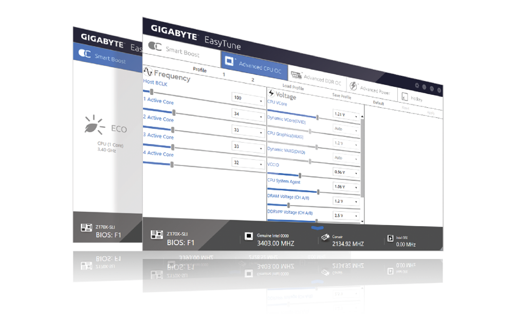 GIGABYTE's EasyTune™ is a simple and easy-to-use interface that allows users to fine-tune their system settings or adjust system and memory clocks and voltages in a Windows environment. With Smart Quick Boost, one click is all it takes to automatically overclock your system, giving an added performance boost when you need it the most.