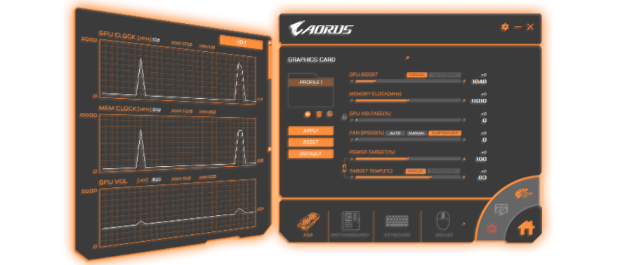 The cutting edge intuitive interface allows you to adjust the clock speed, voltage, fan performance and power target in real-time according to your game’s requirements.