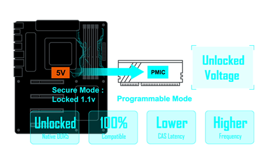 • Dual Channel DDR5 : 4*DIMMs XMP Memory Module Support