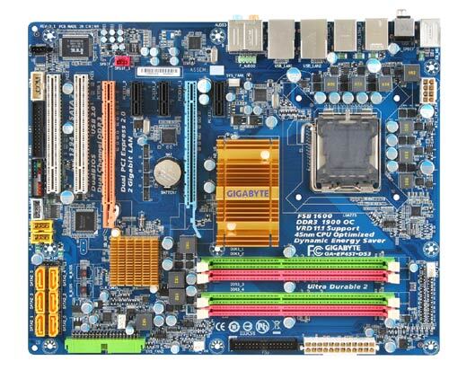 Based on the new Intel P45 chipset, GA-EP45T-DS3 delivers a record setting 1600MHz Front Side Bus for the latest Intel® Core 2™ multi-core processors, including 45nm CPUs. With supporting dual channel DDR3 up to 1900MHz (O.C.). GA-EP45T-DS3 is equipped to support ATI CrossFireX™ Technology with dual PCI Express 2.0 x8 interfaces, delivering double the PCI Express bandwidth of 5 Gbit/s for the ultimate in extreme gaming performance. GA-EP45T-DS3 also delivers several advanced GIGABYTE innovations including the DES Advanced, Ultra Durable 2 which provide optimized power savings, ultra cooling for extreme system performance.