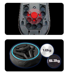 1.8g/5.3g weights allows you to adjust to the optimal weigh and balance
