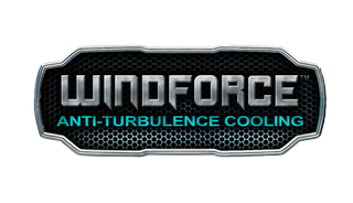 گیگابایت WINDFORCE را معرفی می کند، جدید ترین فن آوری خنک کننده خود که کارت های گرافیک گیگابایت را از دیگر کارت های موجود در بازار متمایز می کند. گیگابایت می داند که فن برای کارت های گرافیکی بسیار مهم است و به همین دلیل تنها فن های با بهترین کیفیت برای WINDFORCE انتخاب می شوند. برای انتخاب شدن برای WINDFORCE، سیستم خنک کننده باید مجهز به باله مایل ضد اختلالات هوایی، فن PWM کم صدا و لوله گرمایی تمام مسی باشد. باله های مایل باعث می شوند که دمای اضافه و اختلالات هوایی تولید نشود. بسته به جهت قرارگیری باله ها، 3 نوع طراحی برای باله های متمایل وجود دارد: مایل به صورت موازی، مایل به صورت متقارن و مایل به صورت سه بعدی. هر کدام از موارد بالا باعث می شوند هوا به خوبی در اطراف کارت گرافیکی به جریان بیافتند تا گرما به صورت موثر از درون هسته پردازنده پراکنده بشود.