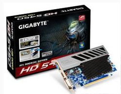 The GIGABYTE GV-R545SC-1GI and GV-R545OC-512I offers optimal performance and break-through efficiency, the GIGABYTE GV-R545SC-1GI and GV-R545OC-512I consume less than 20 watts under full load, making it the ideal choice for implementation across a large diverse install base of desktop PCs. In addition to supporting a wide range of the latest graphics technologies including dual mode software CrossFireX™, ATI Stream technology, Microsoft® DirectX® 11, PCI Express 2.1 and UVD 2, the GIGABYTE GV-R5000 series are also equipped with the industry-leading GIGABYTE unique features including Ultra Durable 2 technology, and native HDMI port for HD gaming and Blu-ray movie playback.