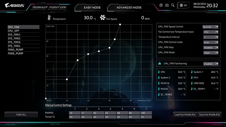 - Slope mode: Smooth fan speed curve