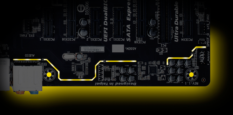 - شريحة صوت Realtek ALC1150 لصوت فائق الوضوح بمعدل نقاء 115dB SNR مع مكبر صوت خلفى مدمج