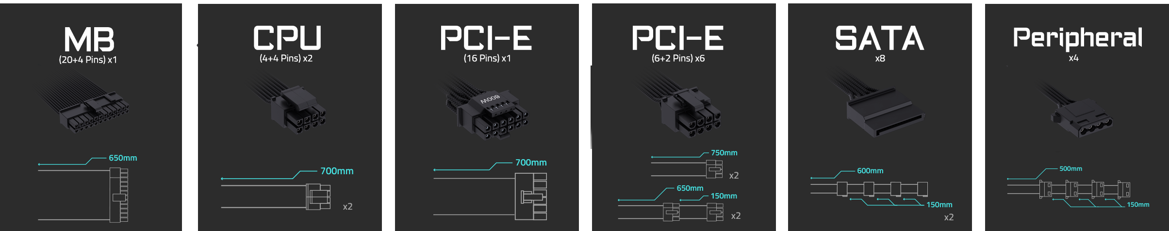Embossed modular cables make clean builds effortless. Connect only what’s needed to reduce clutter, optimize airflow, and unlock better thermal performance inside the chassis.
