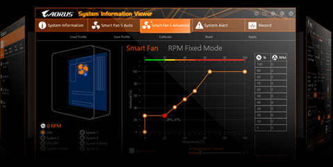 GIGABYTE System Information Viewer is a central location that gives you access to your current system status. Monitor components such as the clocks and processor, set your preferred fan speed profile, create alerts when temperatures get too high or record your system's behavior; these are the possibilities of the System Information Viewer.