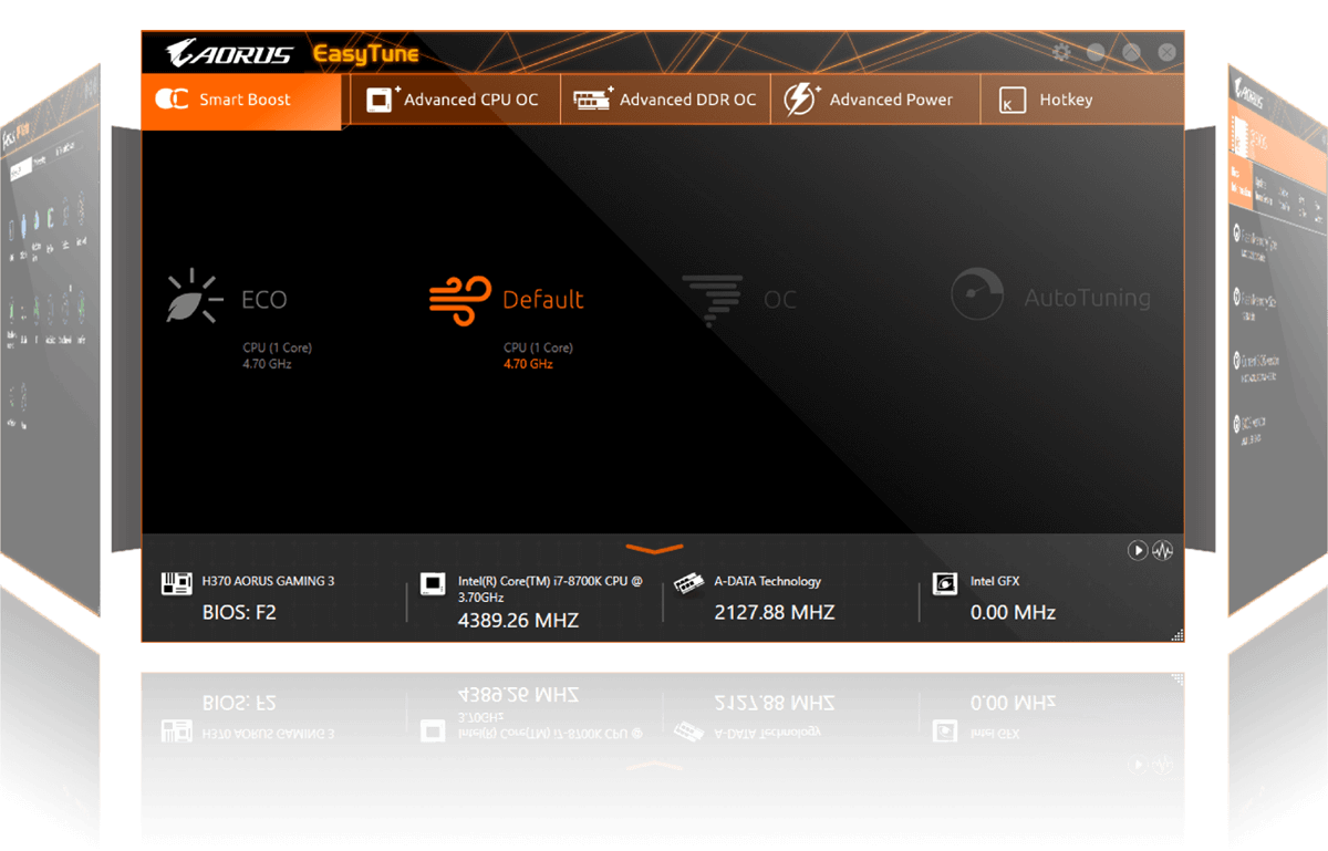 GIGABYTE's EasyTune™ is a simple and easy-to-use interface that allows users to fine-tune their system settings or adjust system and memory clocks and voltages in a Windows environment. With Smart Quick Boost, one click is all it takes to automatically overclock your system, giving an added performance boost when you need it the most.