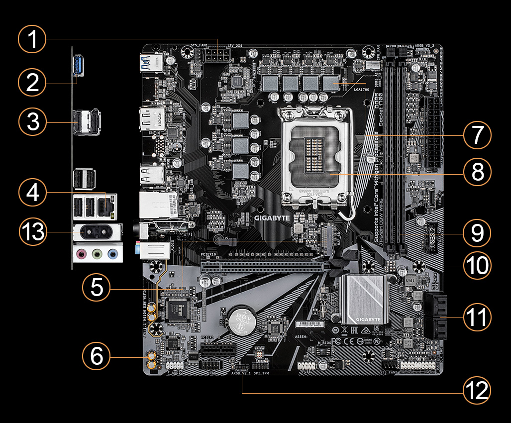 Intel® H610 Motherboard with 5+1+1 Hybrid Phases Digital VRM Design, PCIe 4.0* Design, Gen3 x4 M.2, GbE LAN, Wi-Fi 6 802.11ax, Anti-Sulfur Resistor, Smart Fan 6