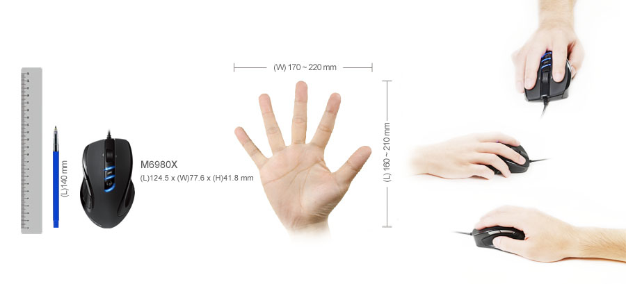 *The hardware based sensitivity up to 5600dpi and software enhanced up to 6000dpi. - Anti-slick Rubber Grip with Ideal Shape for comfortable Gameplay