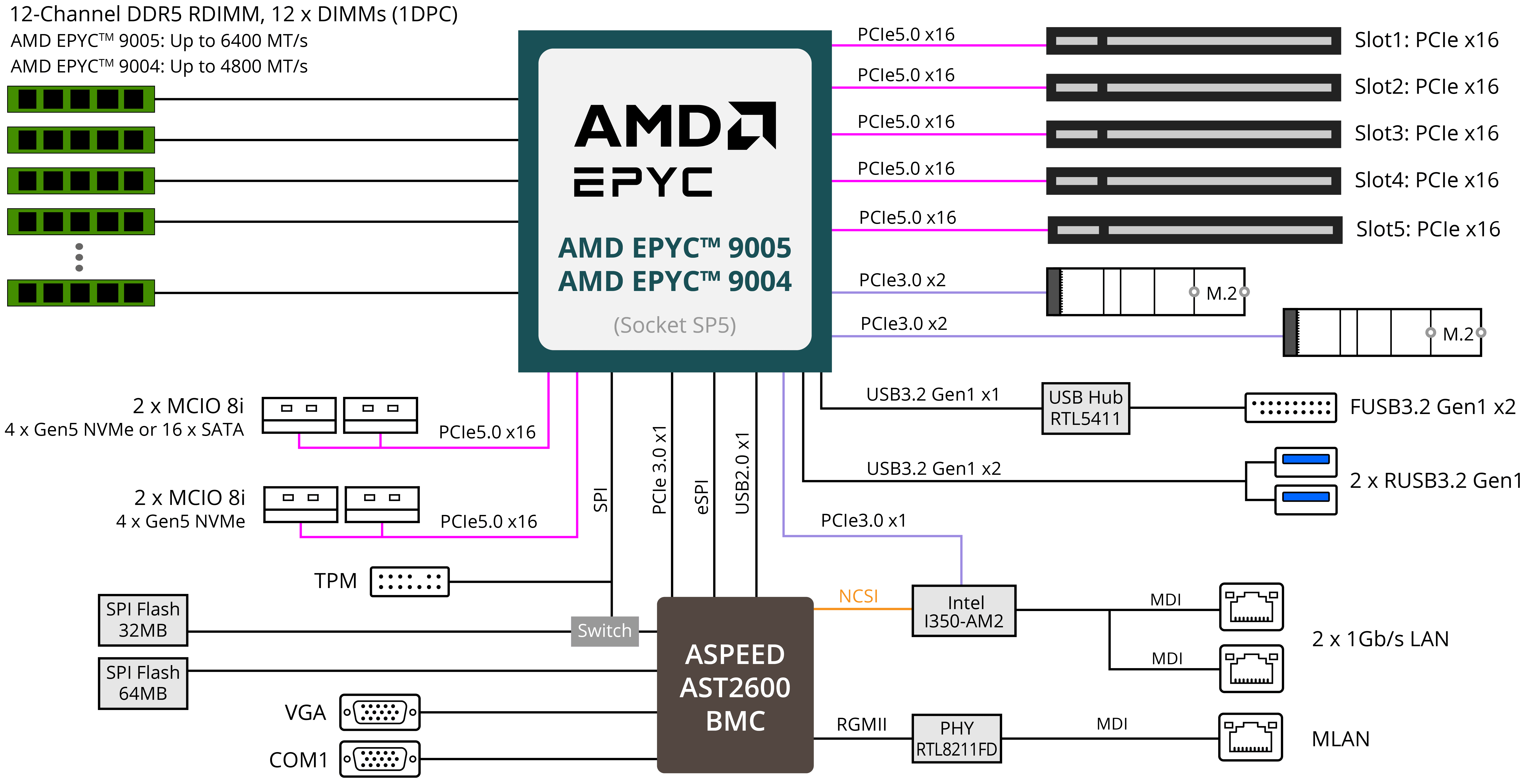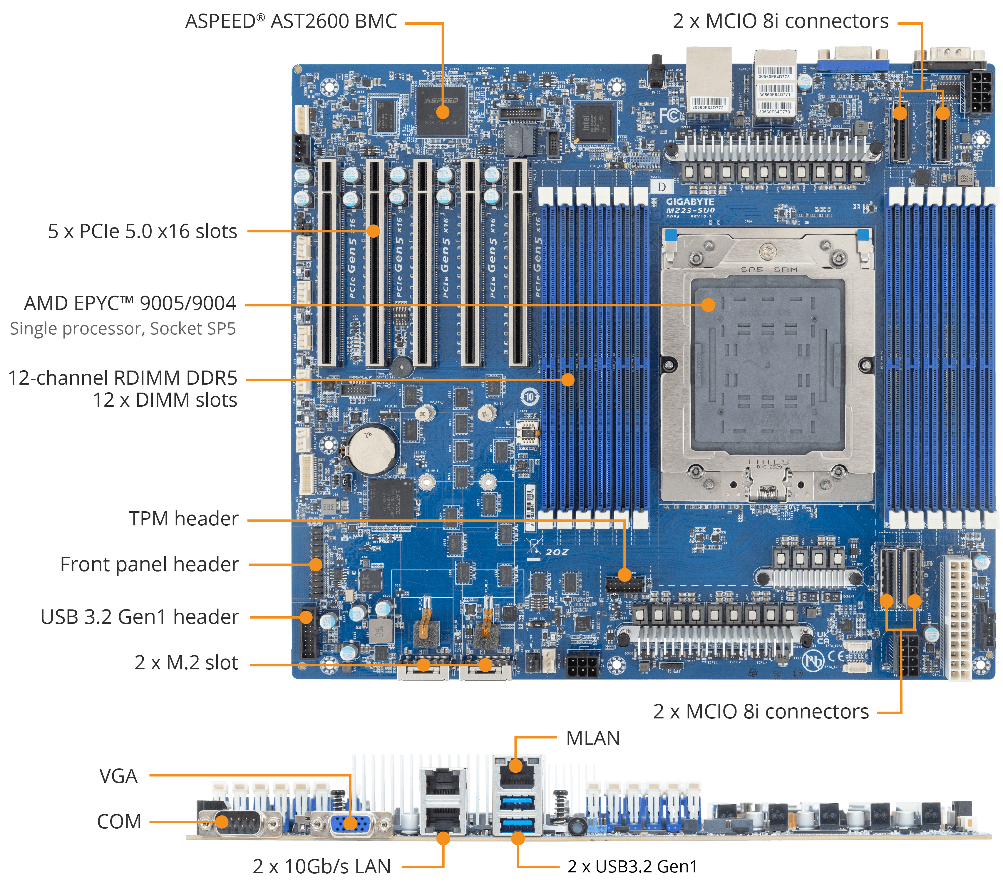 2 x MCIO 8i (Gen5 x8 or SATA)