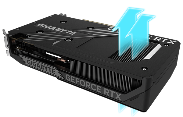 The WINDFORCE cooling system delivers exceptional thermal performance through a combination of cutting-edge technologies. It features server-grade thermal conductive gel, innovative Hawk fans with alternate spinning, composite copper heat pipes, a copper plate, 3D active fans, and screen cooling.