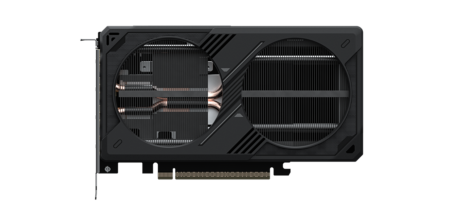 The copper plate directly contacts the GPU, coupled with the composite copper heat pipes, which quickly transfers the heat of the GPU and VRAM to the heatsink.