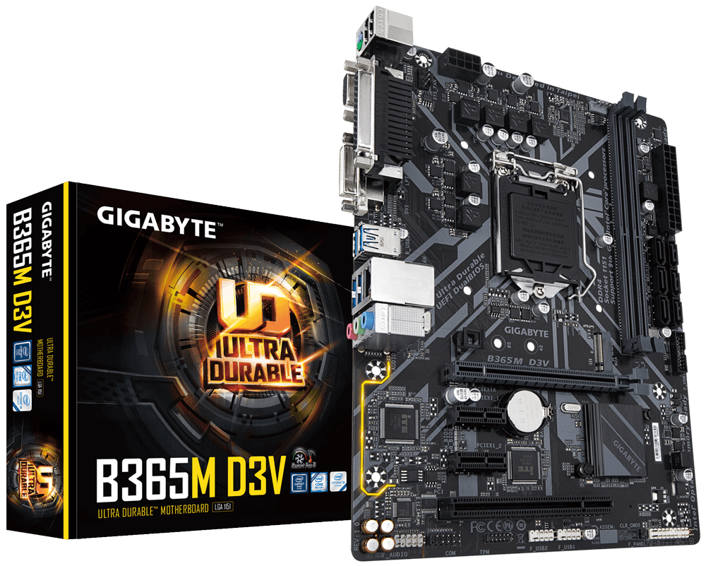 Intel B365 Ultra Durable motherboard with GIGABYTE 8118 Gaming LAN, PCIe Gen3 x4 M.2, Smart Fan 5, Anti-Sulfur Resistors, DualBIOS™, CEC 2019 ready