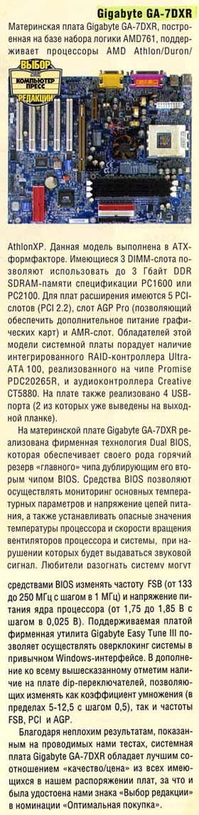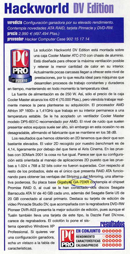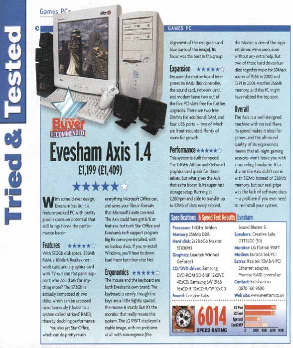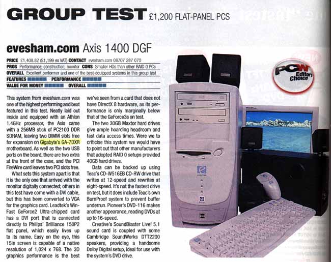 • The PC System ''Evesham Axis 1400DGF'' with GIGABYTE GA-7DXR inside, ''Recommended''