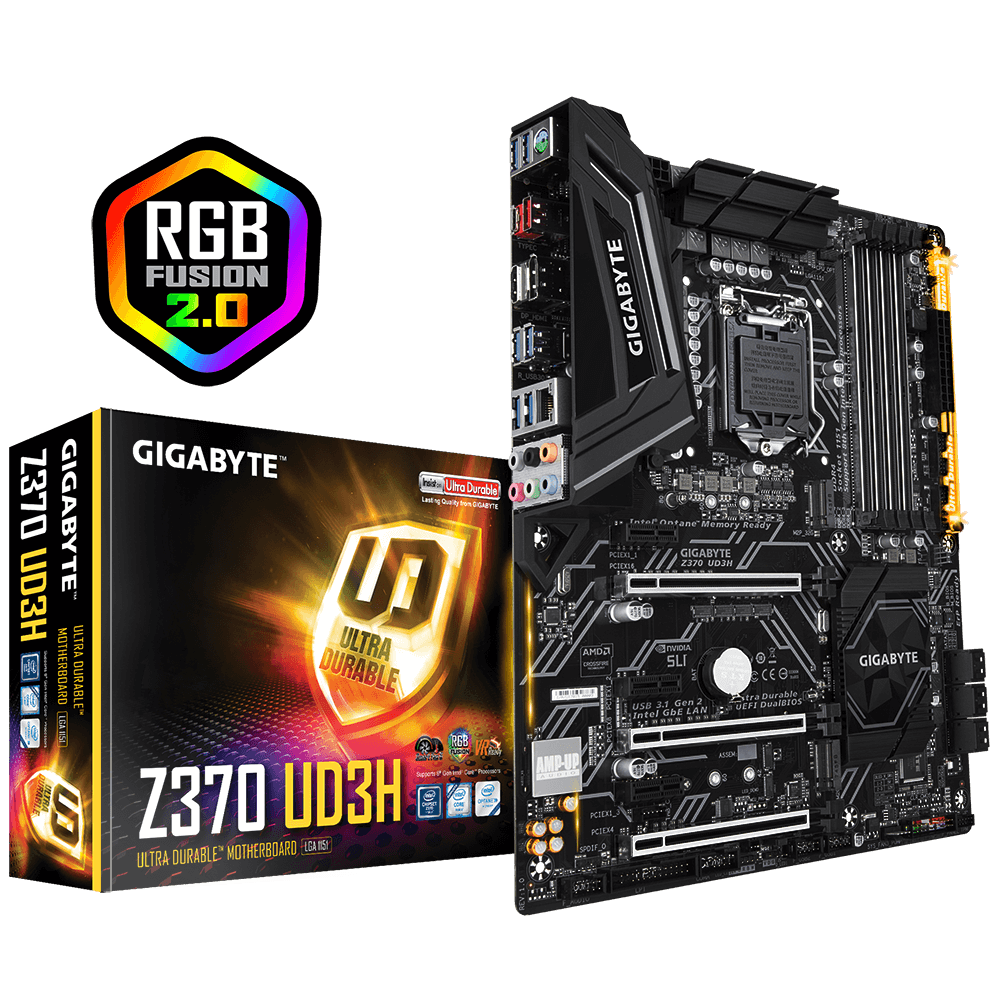 Intel Z370 Ultra Durable motherboard with SLI/CrossFire support, USB 3.1 Gen2 with Type-C, Intel GbE LAN with 25KV protection, Dual M.2, RGB Fusion, Digital LED support, Smart Fan 5