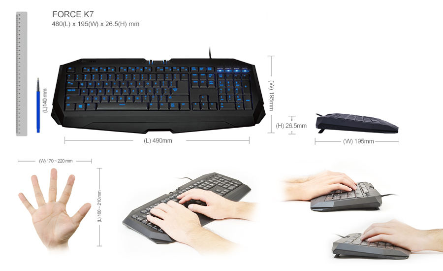 Built with slim scissor-key structure, FORCE K7 ensures extreme short actuation distance and stable key presses. Ultra-slim keycaps also minimize the typing effort in keyboarding.