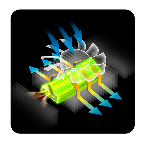 The first WINDFORCE™ 2X 100mm Fansink with "Triangle Cool" Technology