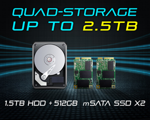 This raging beast achieves stunning P8500 in 3DMark 11. Powered by the top-tier NVIDIA® GeForce® GTX 880M GDDR5 8GB discrete graphics, P25 v2 is simply incredible for a laptop in its form factor. The 4th-gen Intel® Core™ i7 quad-core processor infuses more horsepower for hardcore gaming yet is utterly power-efficient for superior battery life when running integrated graphics. P25 v2 boasts a unique design of expanded dual air vents, ensuring optimal cooling while gaming. The massive dual storage supports two mSATA SSD up to 512GB and one 1.5TB HDD that combines speed and capacity, plus RAID 0 ensuring lightning transmission for rapid boots after startup and ultra-responsive operations in gaming. Its 16GB RAM is not only more than enough for seamless gaming, but also readies users with workstation-class power for media creation tools. P25 v2 makes a great portable solution for those that need 3D power for either gaming or running pro-graphics applications on the move.