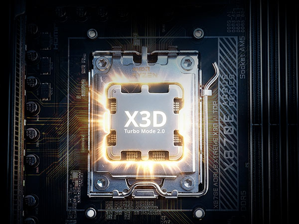專為 X3D 運算的未來而打造,結合先進供電設計、極致高速記憶體相容性,以及次世代散熱架構。