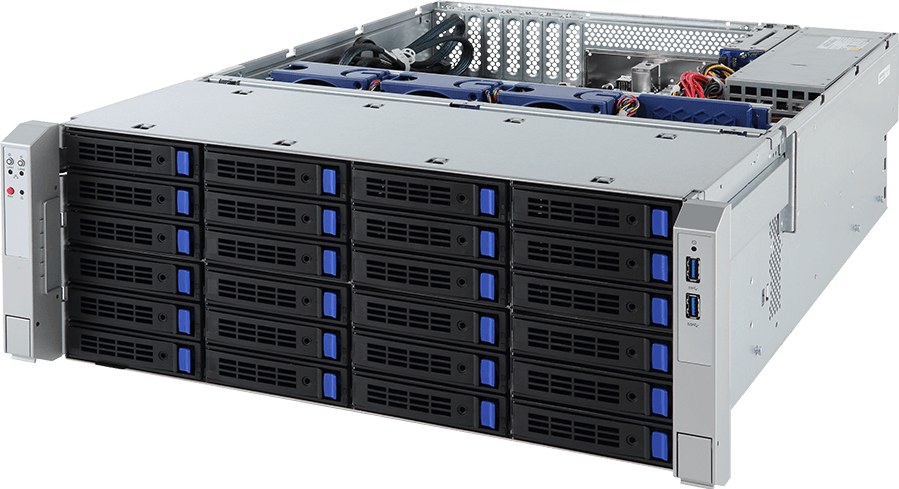 Front side: 24 x 3.5" or 2.5" SATA/SAS hot-swappable HDD/SSD bays