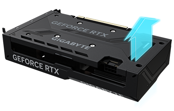 技嘉風之力散熱系統搭載2個 9公分獨特刀鋒導流造型風扇,搭配正逆轉功能、3根高效能純銅熱導管直觸GPU導熱、風扇停轉功能以及Screen cooling等散熱技術,可大幅提升解熱能力。